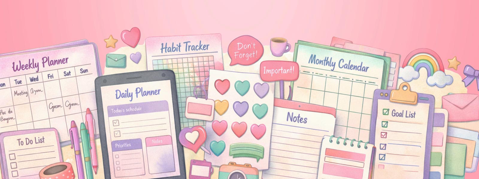Instant download with planners + trackers + challenges + worksheets and more to help you reset habits, manage your time, and stay consistent.